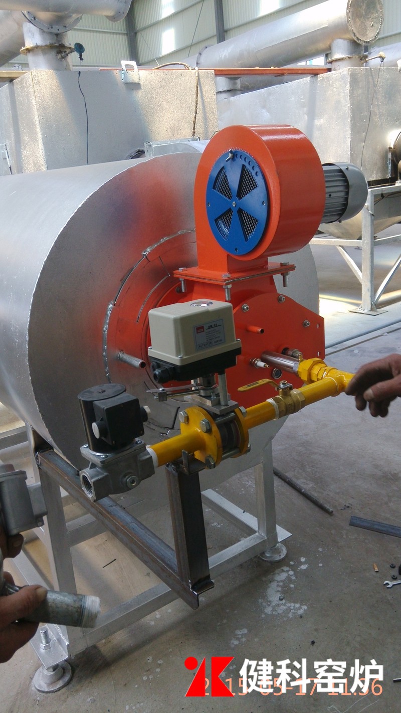 熱風(fēng)爐主要由燃燒機(jī)、燃燒室組成。相對(duì)于燃煤、生物質(zhì)熱風(fēng)爐,該熱風(fēng)爐燃燒所產(chǎn)生的煙氣干凈,潔凈度高,燃料燃盡率高,控制精度高。