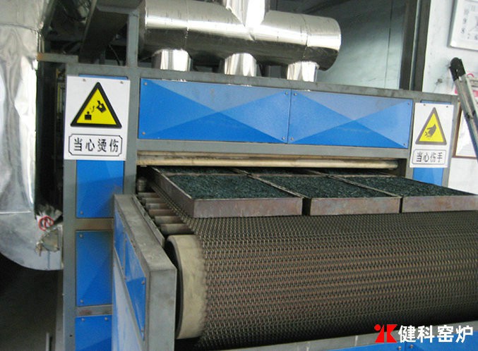 網帶窯屬于連續性窯爐,傳動方式為金屬網帶,金屬網帶由托輥或托板承載,主要用于陶瓷玻璃烤花、玻璃熱彎成型、玻璃退火、催化劑再生、粉體材料的干燥、焙燒。按加熱方式可分為燃氣窯和電熱窯兩類。網帶根據溫度選用不同材質的不銹鋼材料,受金屬材質所限,一般網帶窯使用溫度<900℃。